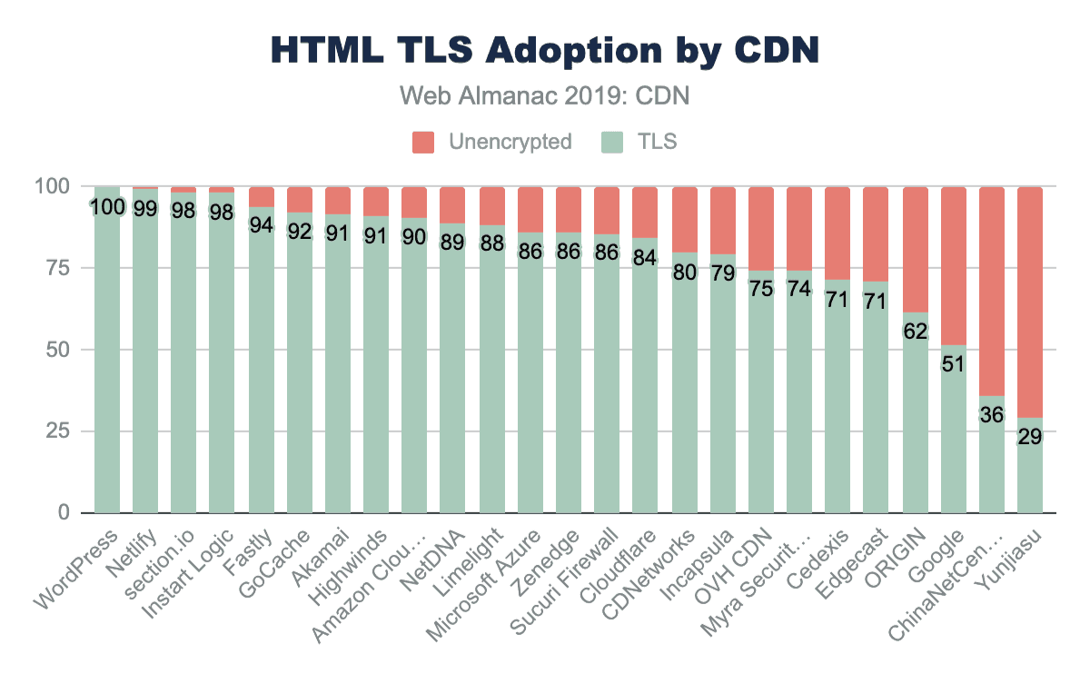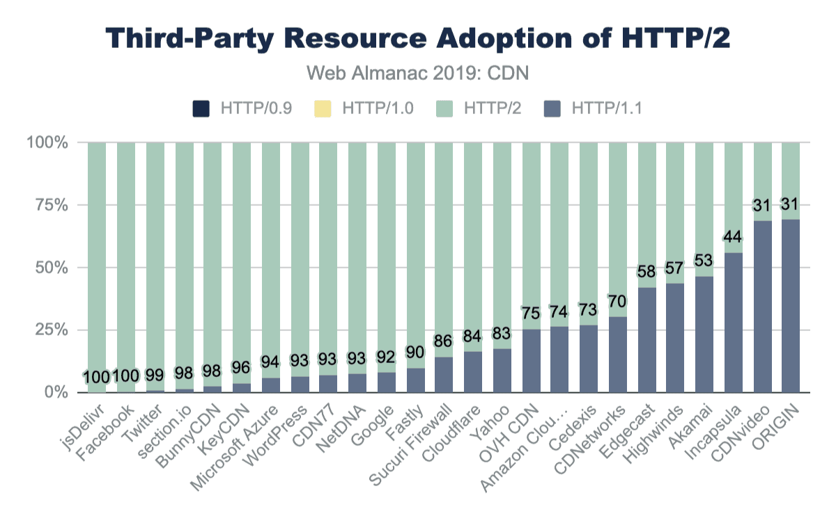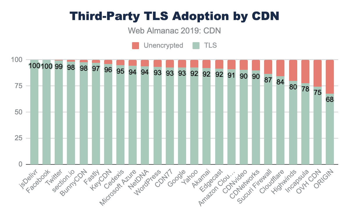 As the web continues to evolve, CDN vendors innovate, and sites use new practices CDN adoption remains an area rich for further research in future editions of the Web Almanac.