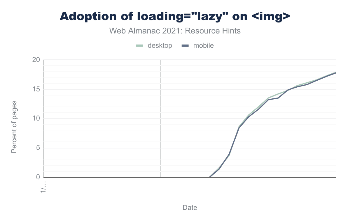 Figure 20.16. The percent of pages that have the loading="lazy" attribute on img elements.